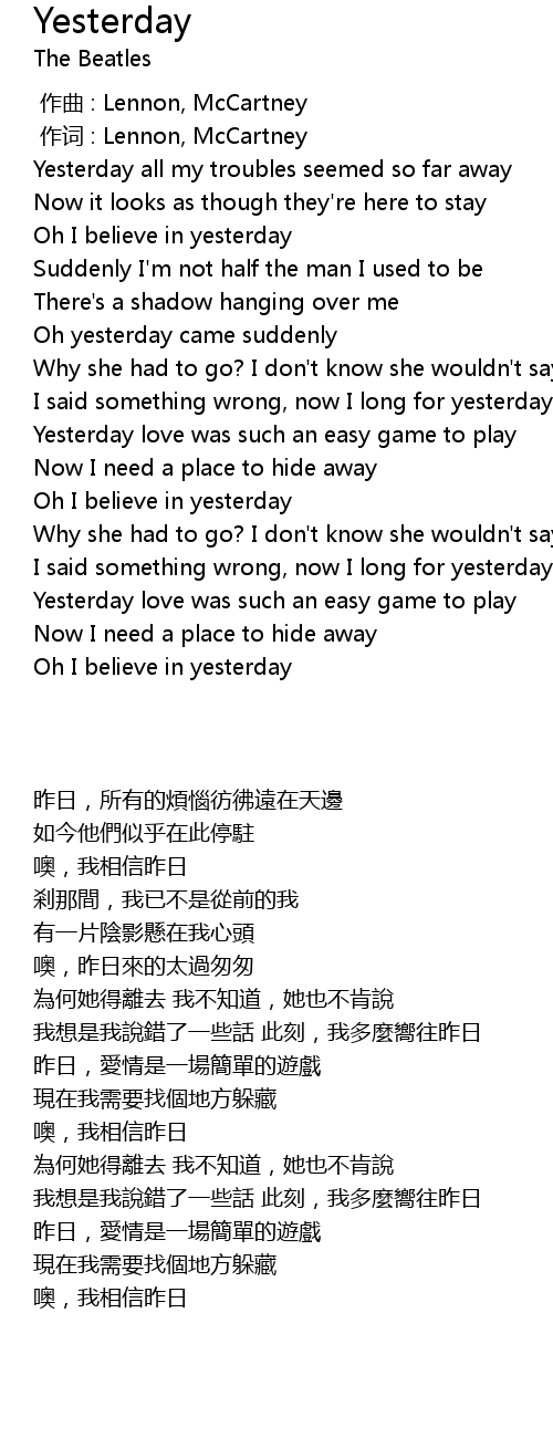| Song | Yesterday |