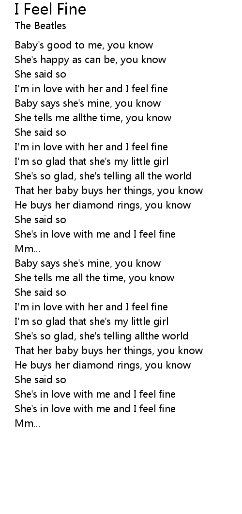 | I' m in love with her and I feel fine | |