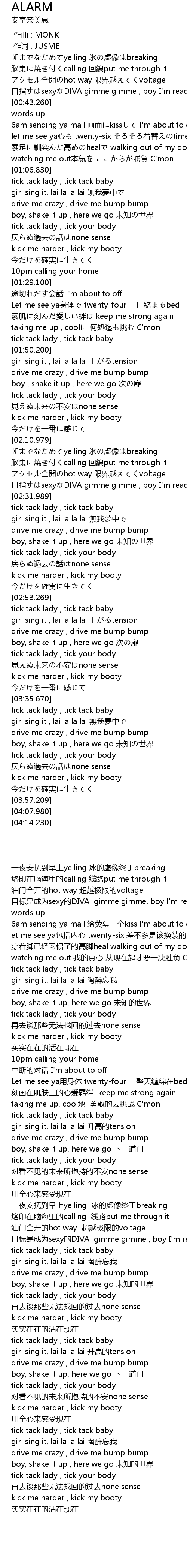 | [00:46.90] | 6am sending ya mail 画面にkissして I'm about to go |
