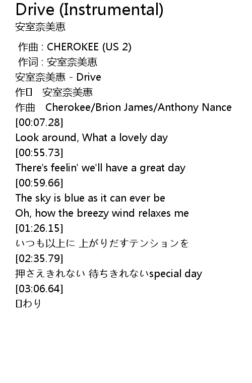 | [00:00.344] | 作词 : 安室奈美恵 |