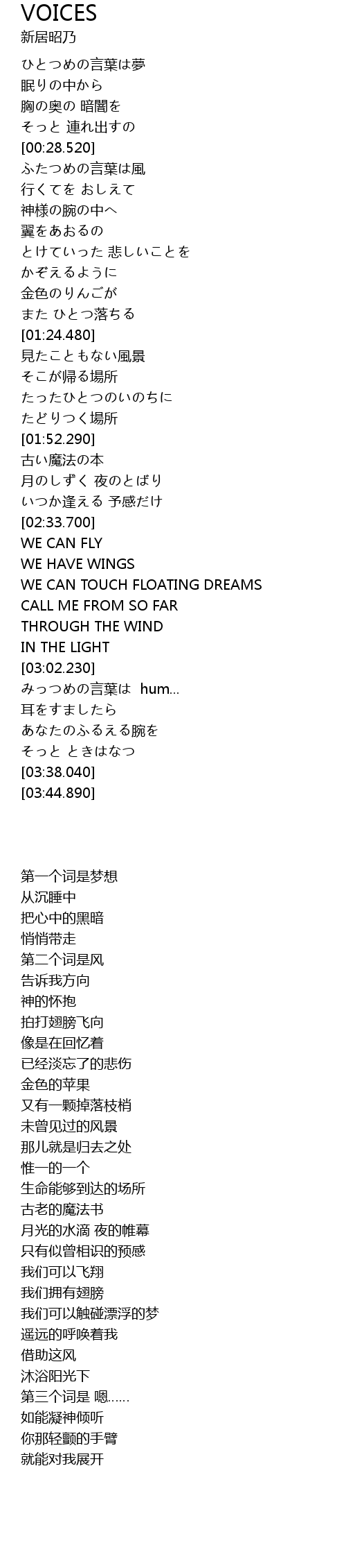 | [03:08.700] | みっつめの言葉は hum... |