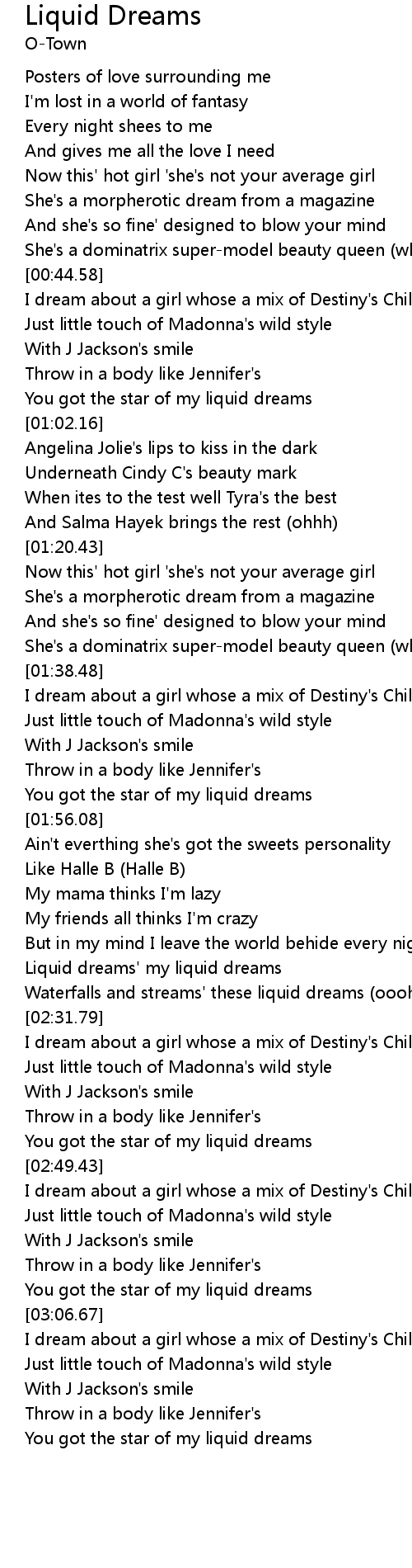 Waterfalls and streams' these liquid dreams (ooohhh) |
