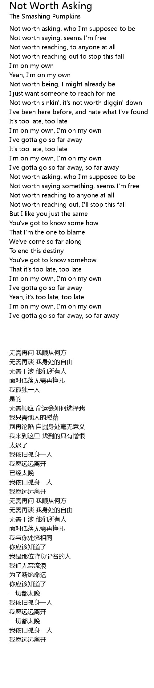 Not worth asking, who I'm supposed to be |