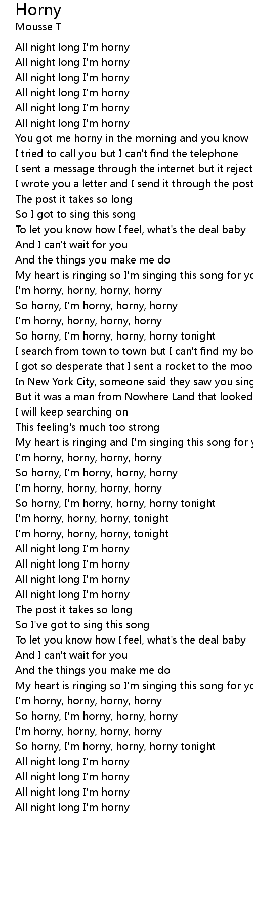 I'm horny, horny, horny, horny |