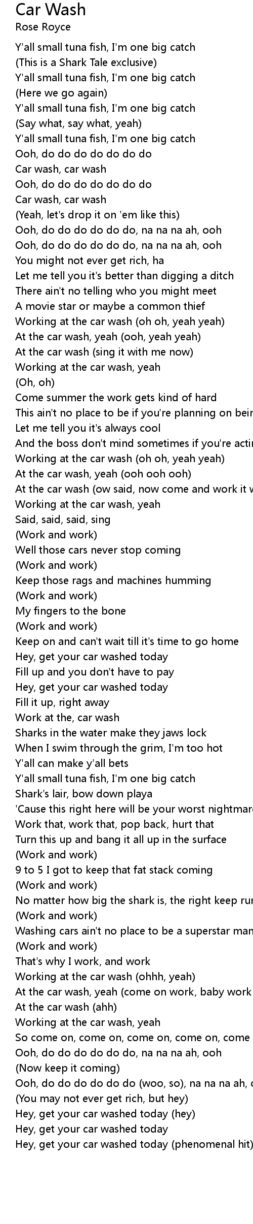 Hey, get your car washed today (phenomenal hit) |