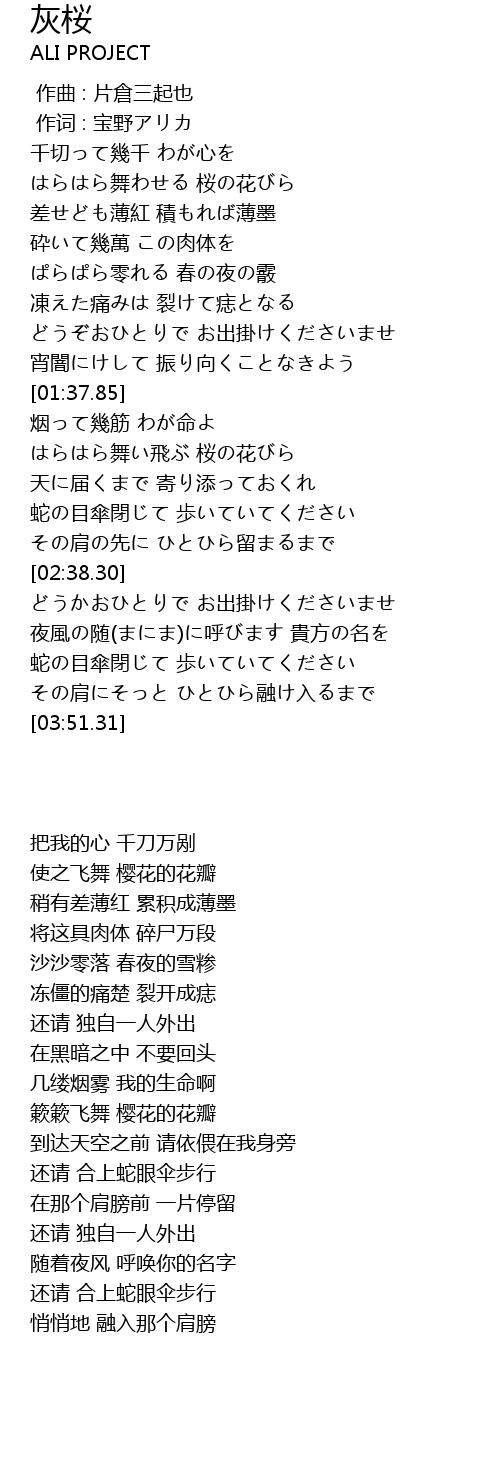 | [00:34.48] | 差せども薄紅 積もれば薄墨 |