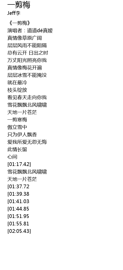 | [02:06.35][01:37.72] | 一剪寒梅 |