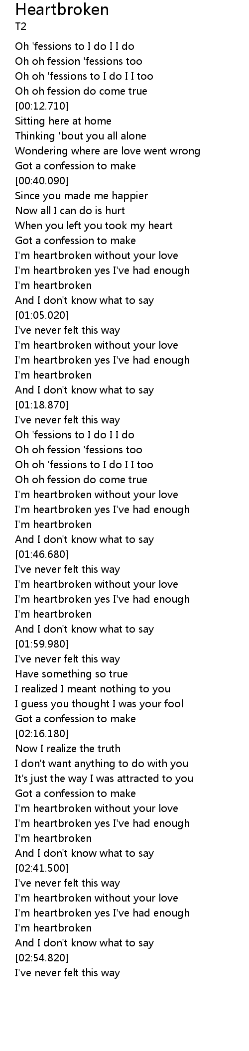 Oh oh 'fessions to I do I I too |