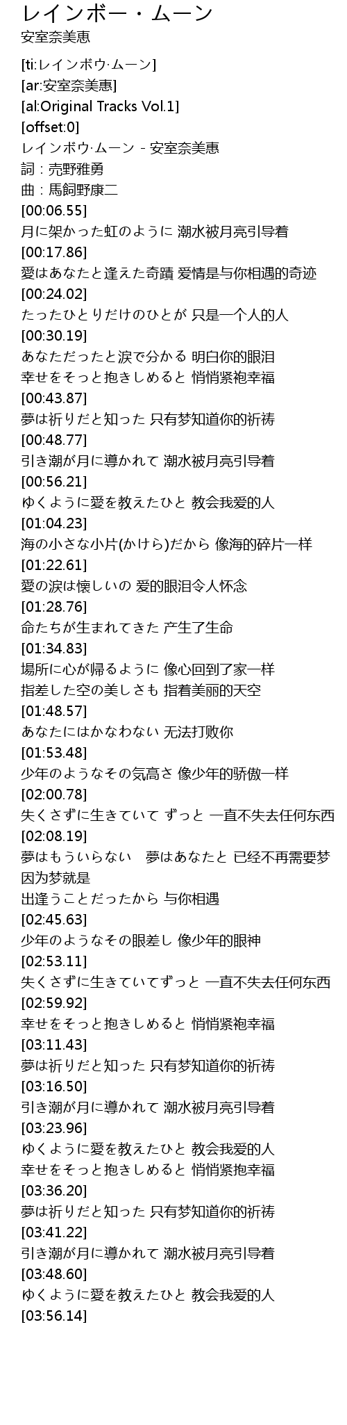 | [00:00.85] | レインボウ·ムーン - 安室奈美惠 |
