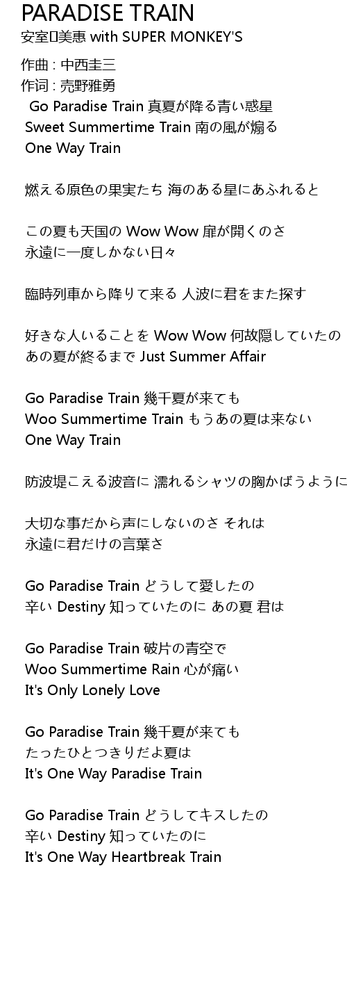 | Song | PARADISE TRAIN |
