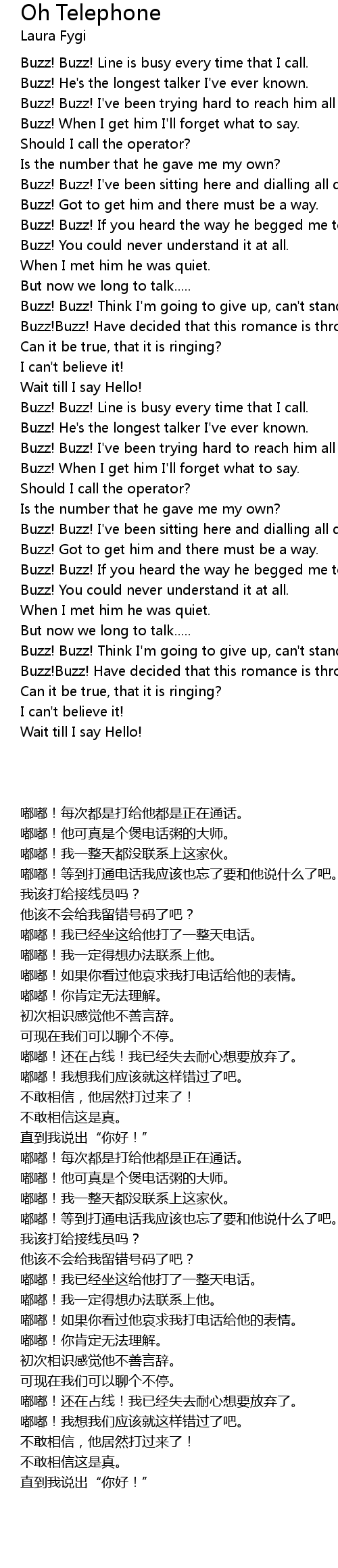 Buzz! Buzz! I've been sitting here and dialling all day. |