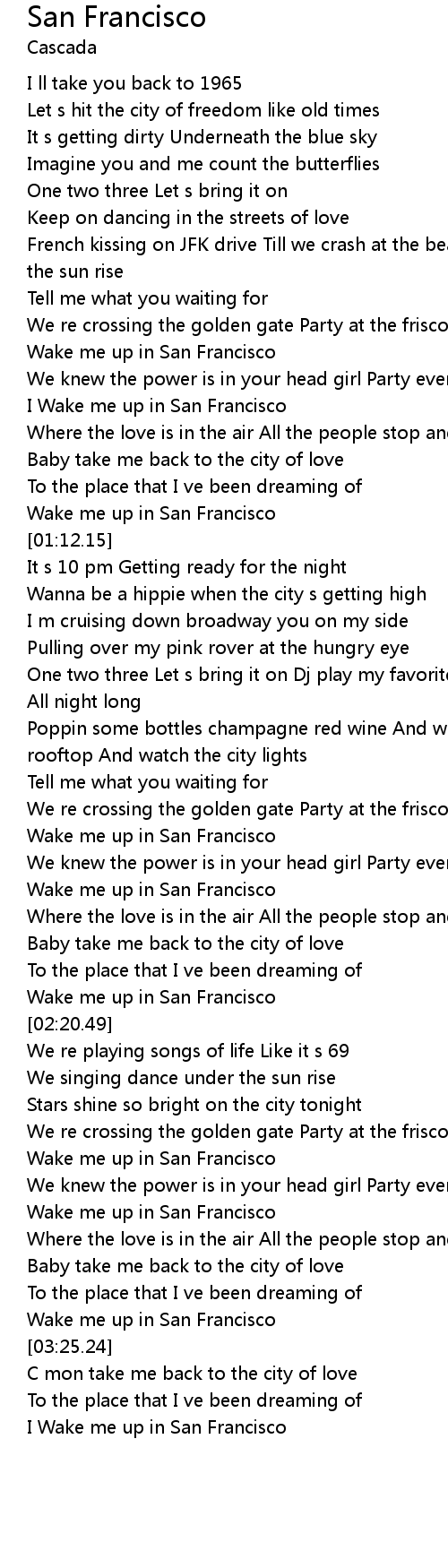 I Wake me up in San Francisco |