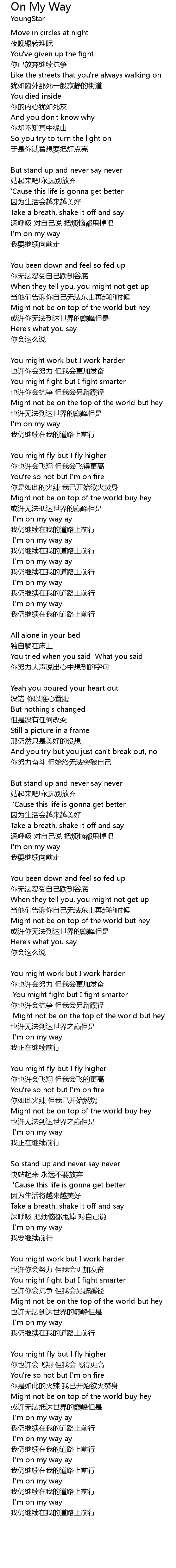 | I' m on my way ay | |