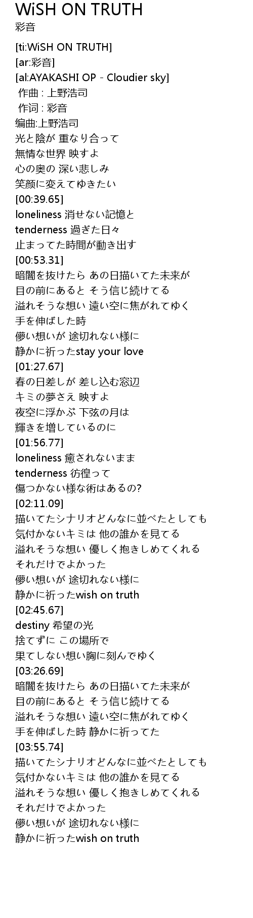 | [al:AYAKASHI OP - Cloudier sky] | |