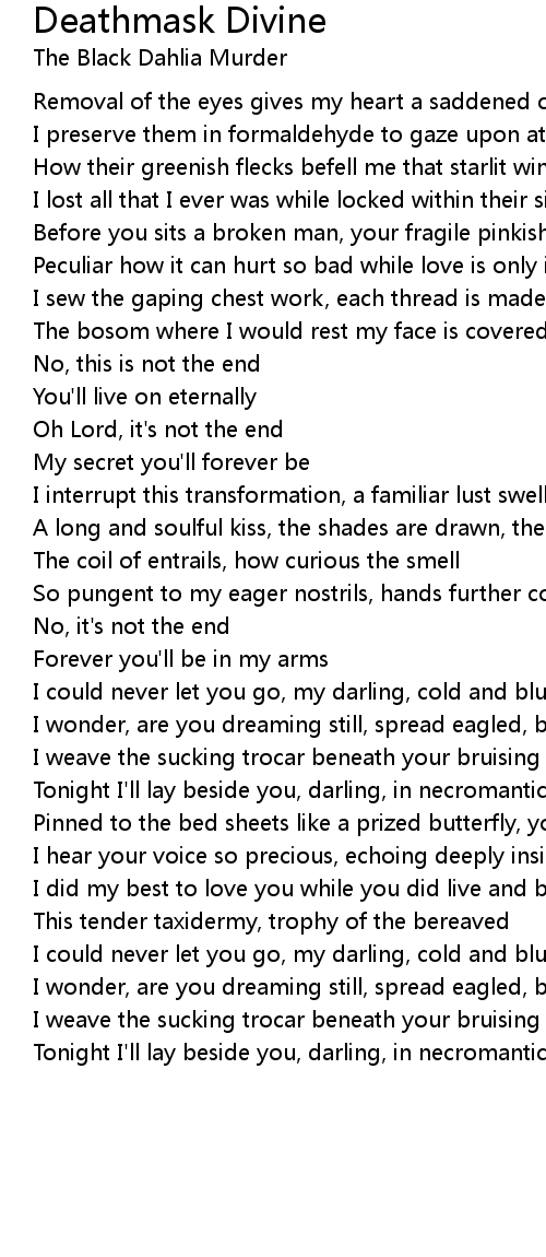 Tonight I'll lay beside you, darling, in necromantic sin |