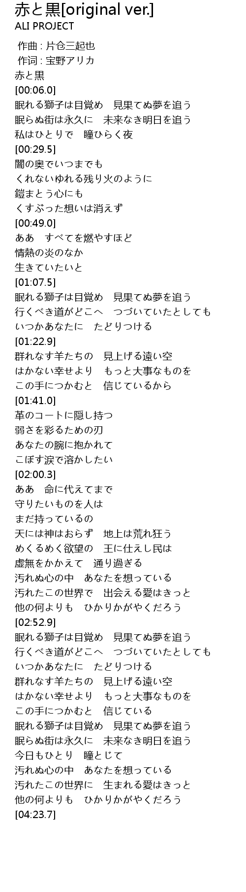| [03:49.5] | 眠れる獅子は目覚め 見果てぬ夢を追う |