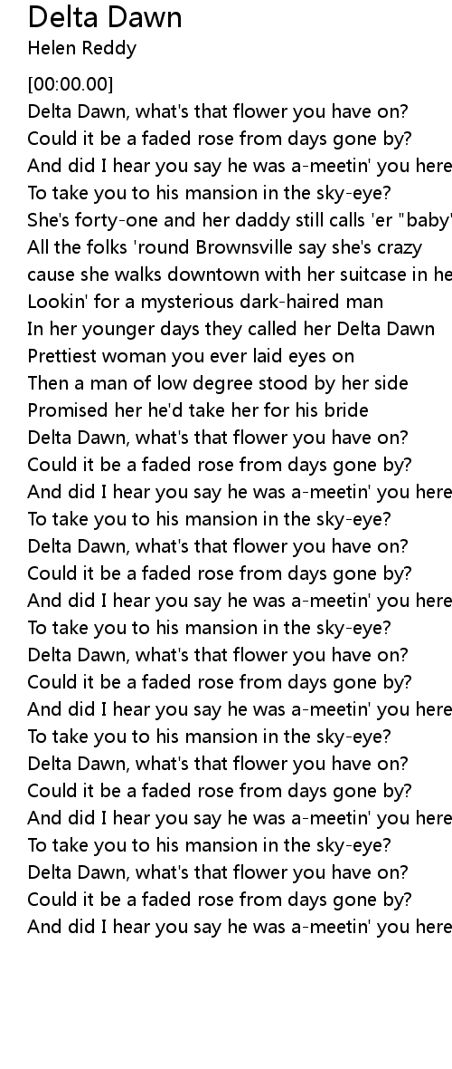 In her younger days they called her Delta Dawn |
