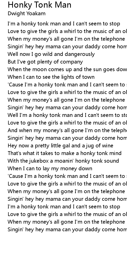 'Cause I'm a honky tonk man and I can't seem to stop |