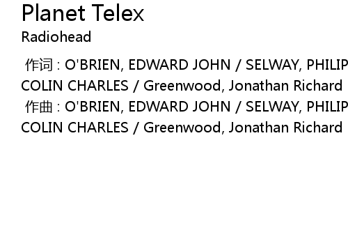 | [00:00.000] | 作词 : O'BRIEN, EDWARD JOHN / SELWAY, PHILIP JAMES / GREENWOOD, COLIN CHARLES / Greenwood, Jonathan Richard Guy / YORKE, THOMAS EDWARD |