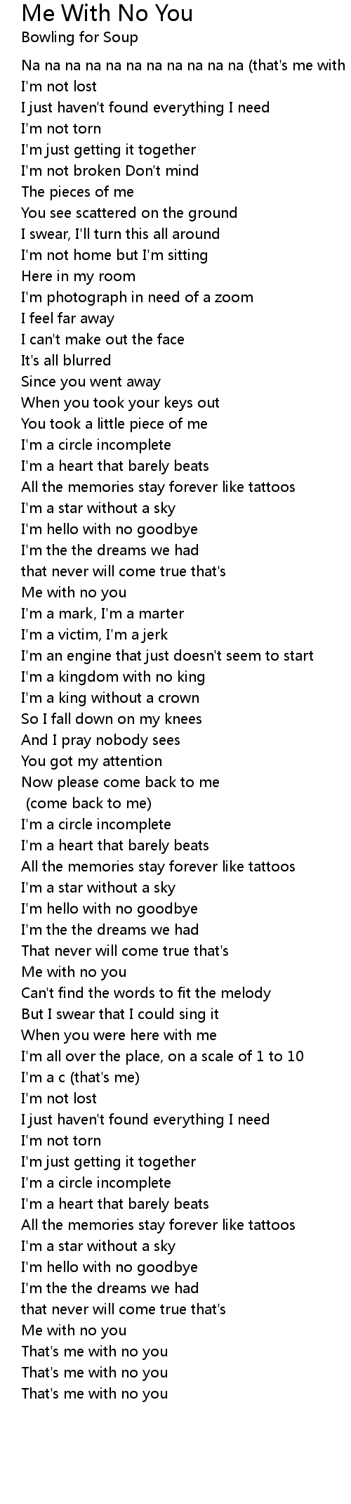 Na na na na na na na na na na na (that's me with no you) |