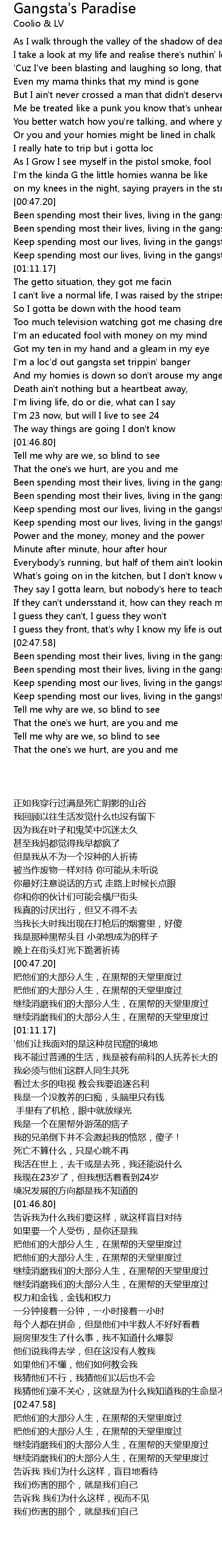 Been spending most their lives, living in the gangsta's paradise |