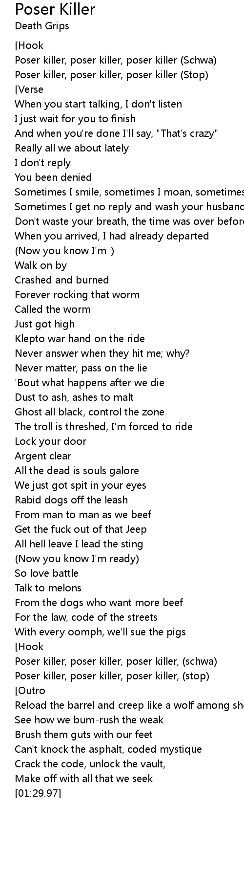 Poser killer, poser killer, poser killer, (stop) |