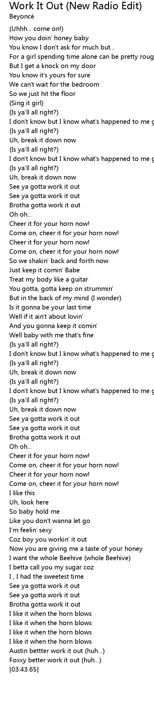 Coz boy you workin' it out |