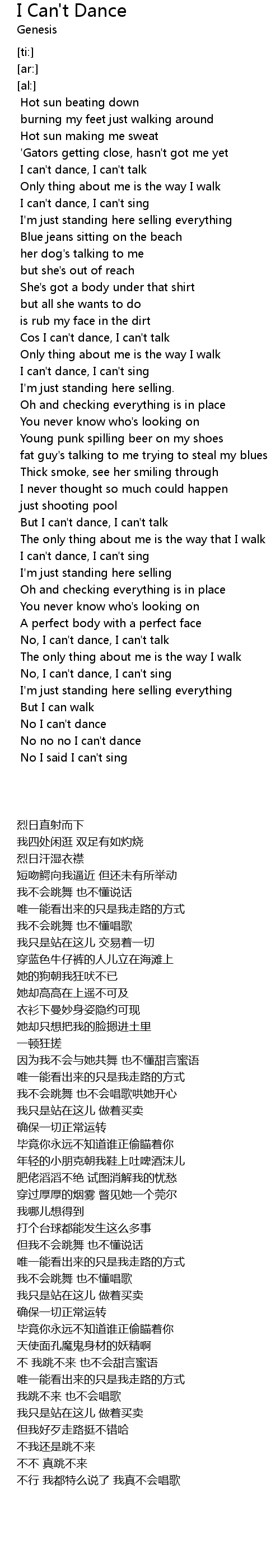 | [01:16.65] | Cos I can't dance, I can't talk |