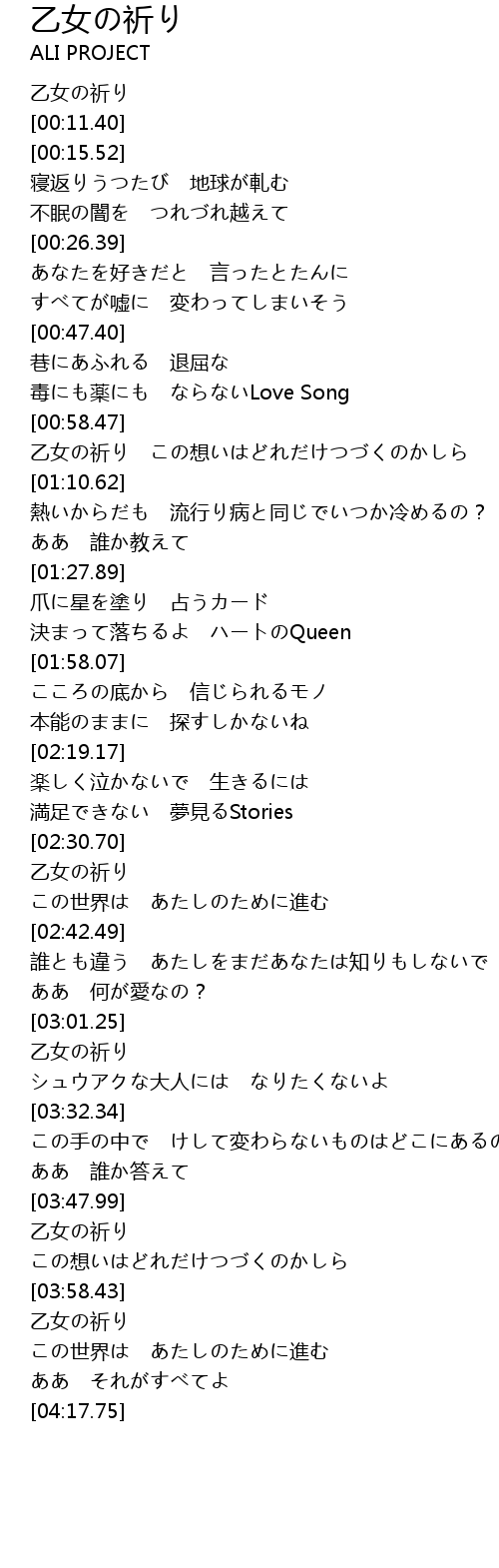 | [00:00.00] | 乙女の祈り |