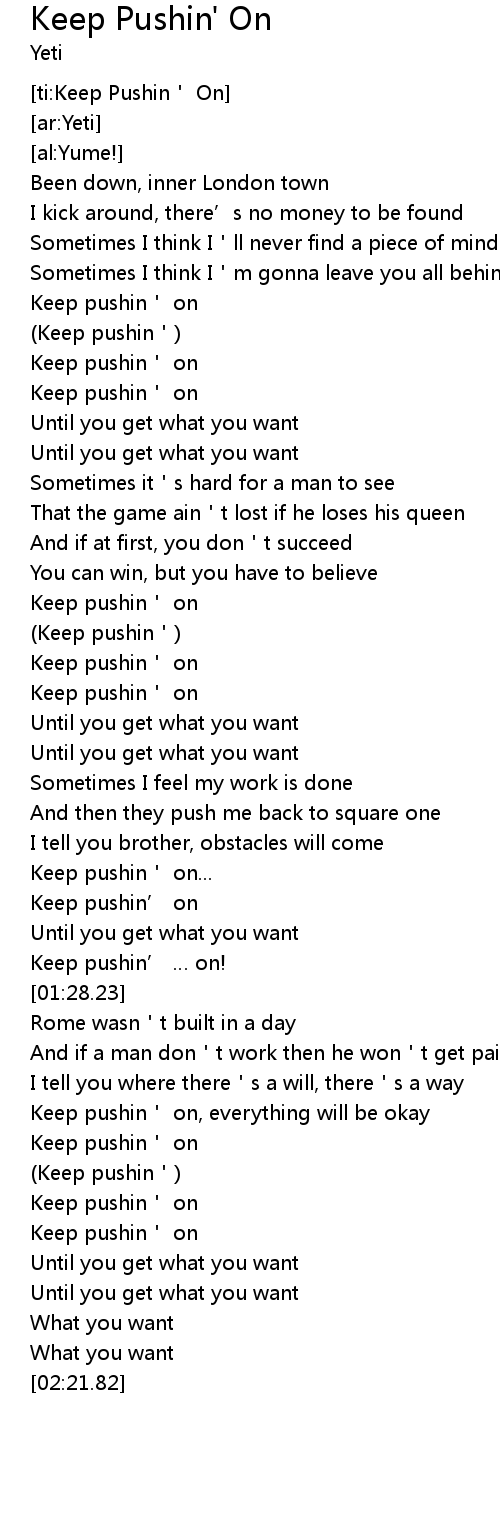 | [00:59.49] | Keep pushin on |