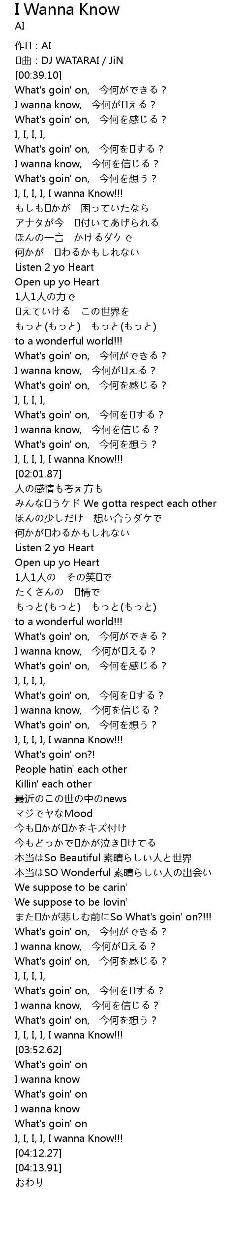 | [03:49.22] | I, I, I, I, I wanna Know!!! |