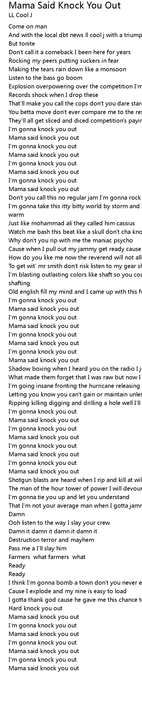 Mama said knock you out |