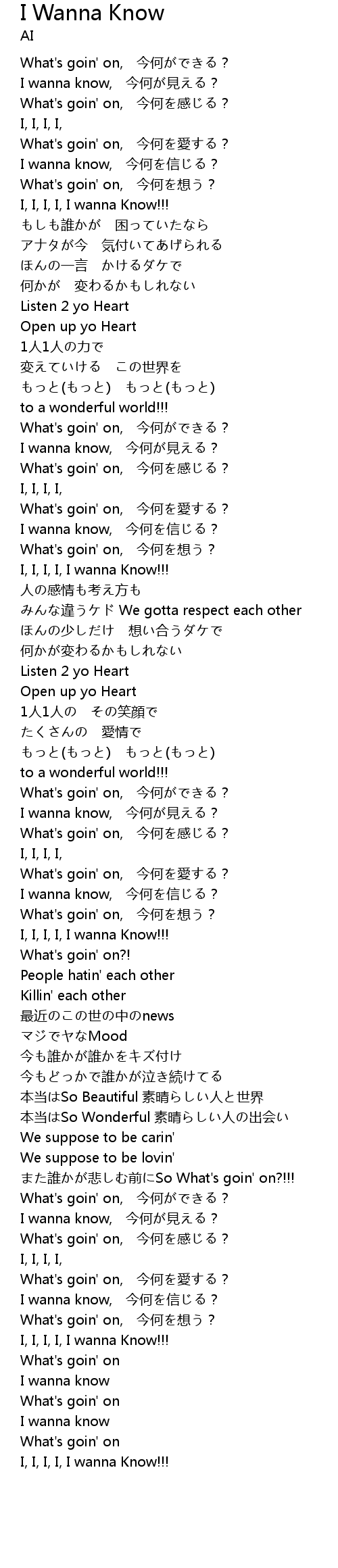 | [00:58.74] | I, I, I, I, I wanna Know!!! |