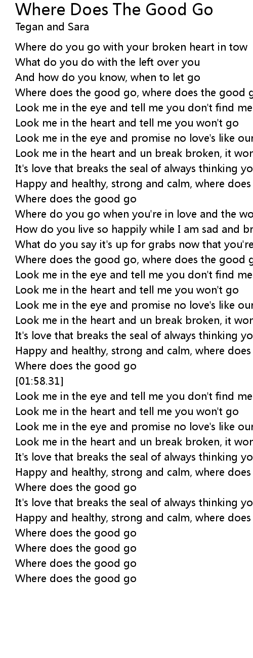 Where does the good go, where does the good go |