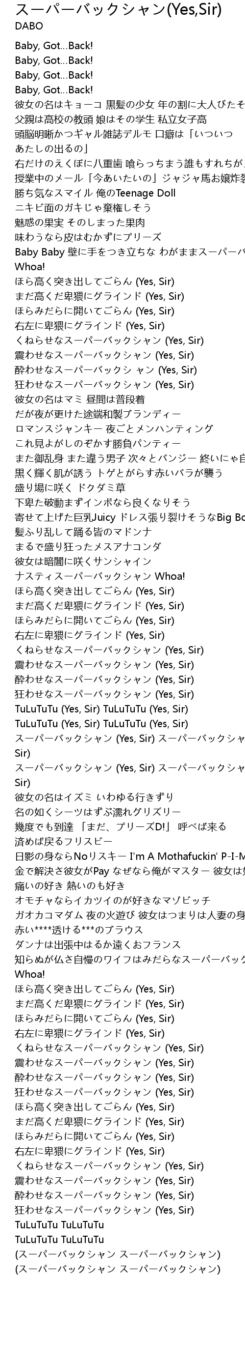 | ほら高く突き出してごらん (Yes, Sir) まだ高くだ卑猥にグラインド (Yes, Sir) | |