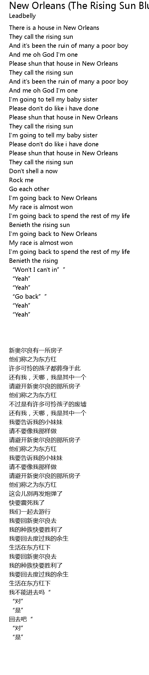 | [00:51.22] | Please shun that house in New Orleans |