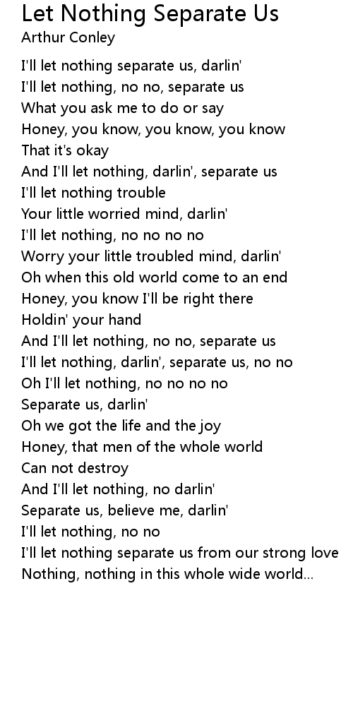 I'll let nothing, darlin', separate us, no no |