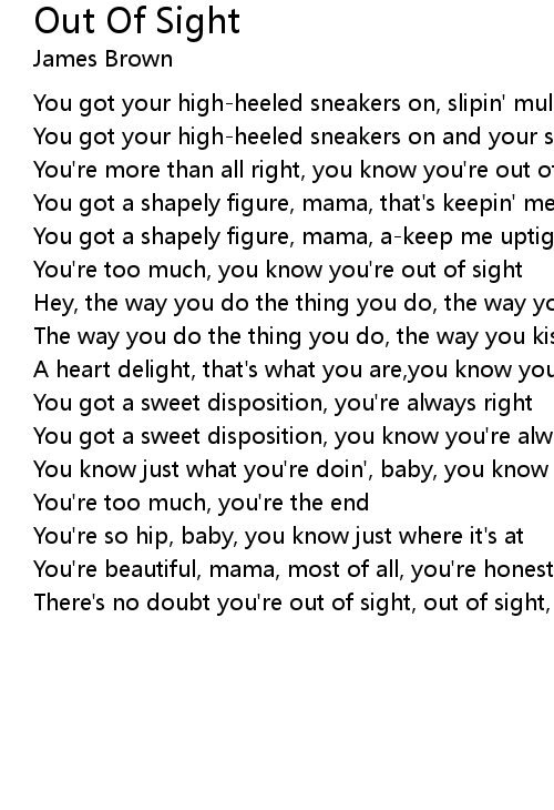 You know just what you're doin', baby, you know you're out of sight |