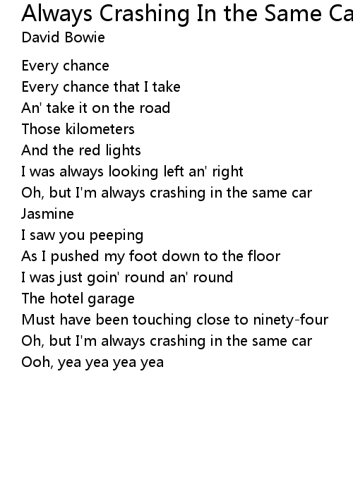 | Oh, but I'm always crashing in the same car | |