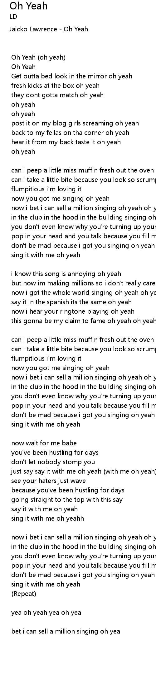 yea oh yeah yea oh yea |
