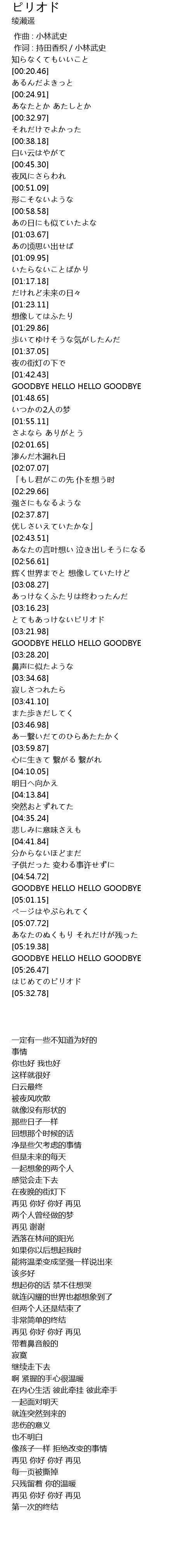 | [05:21.76] | GOODBYE HELLO HELLO GOODBYE |