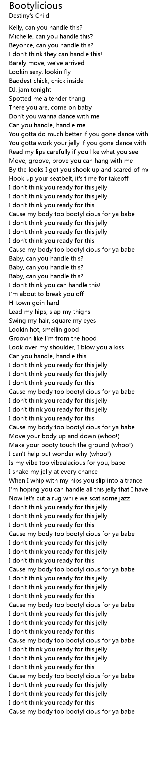 Cause my body too bootylicious for ya babe |