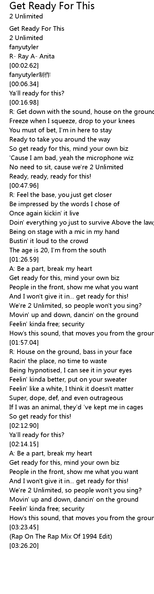 | [00:46.34] | Ready, ready, ready for this! |