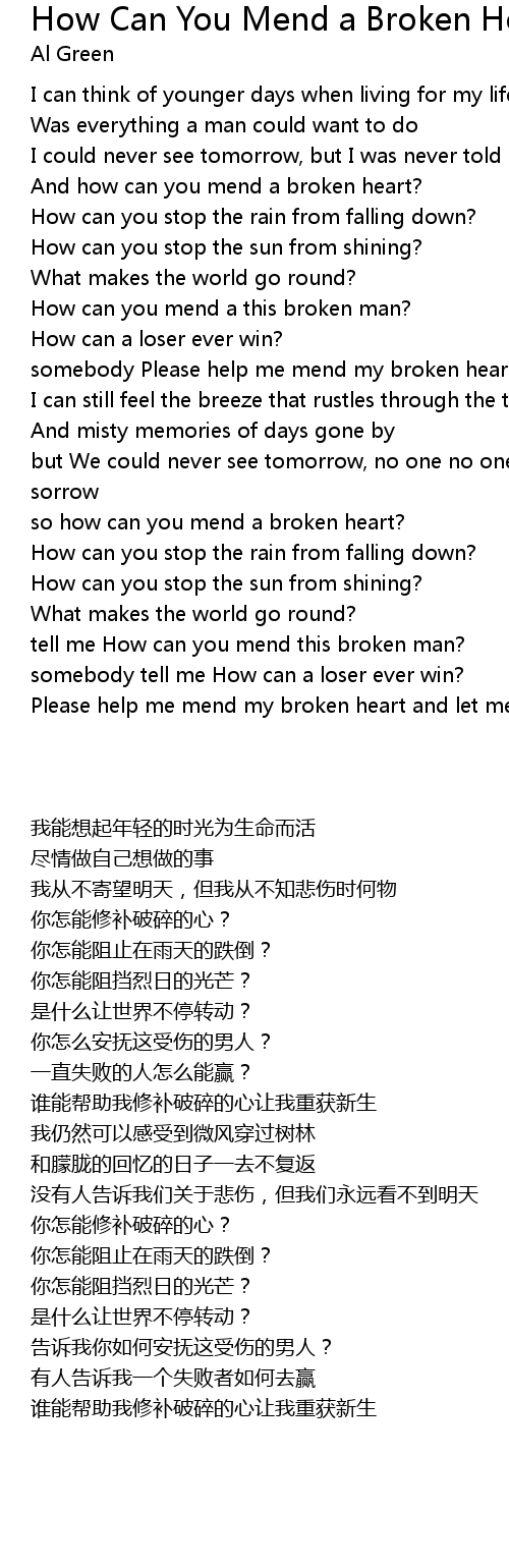 so how can you mend a broken heart? |