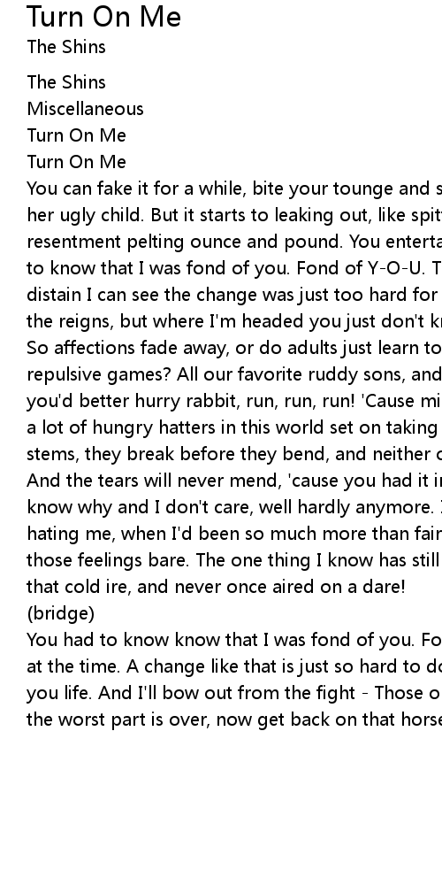 Turn On Me |