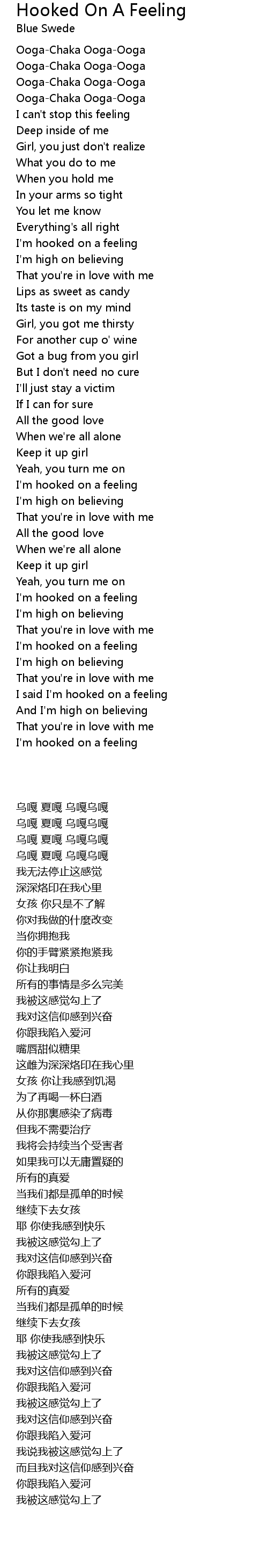 I said I'm hooked on a feeling |