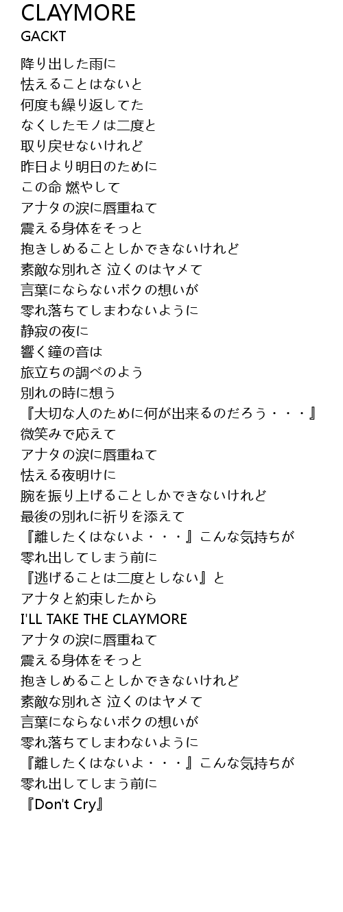 | Song | CLAYMORE |