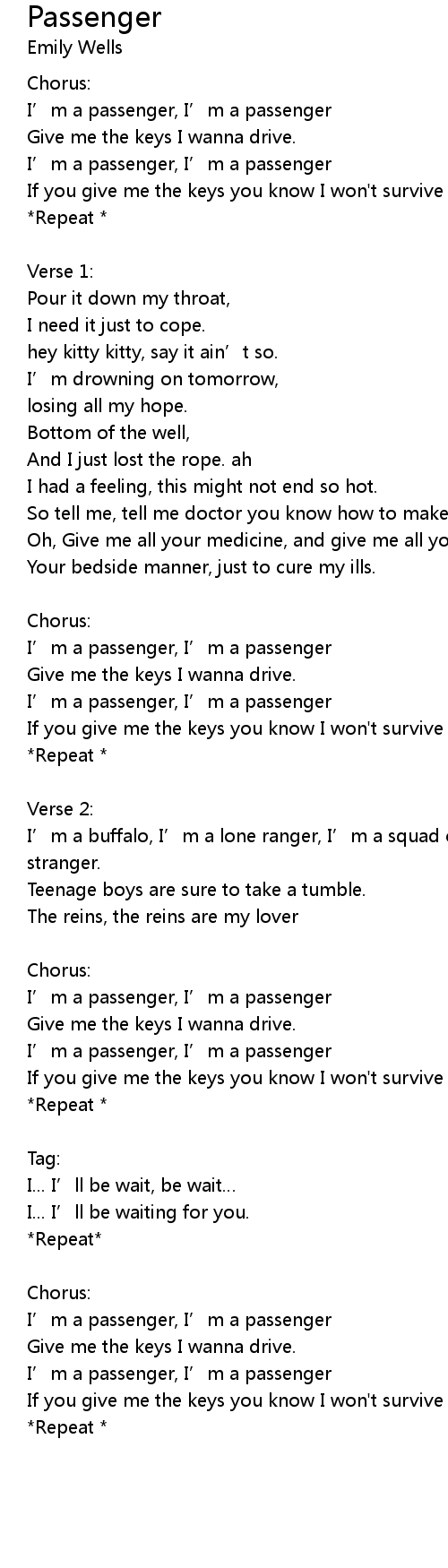 | Oh, Give me all your medicine, and give me all your pills. | |