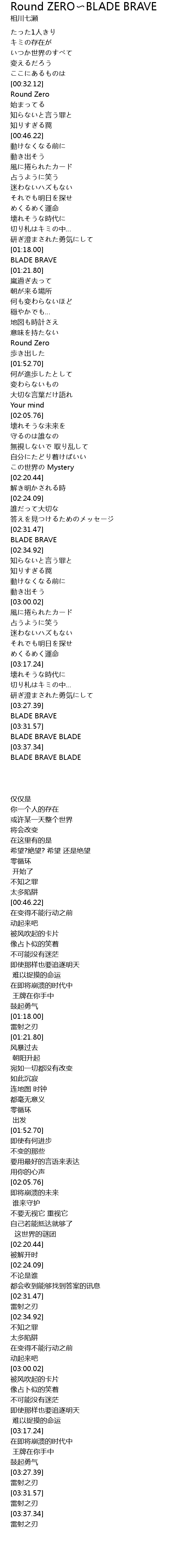 Round ZERO BLADE BRAVE Lyrics