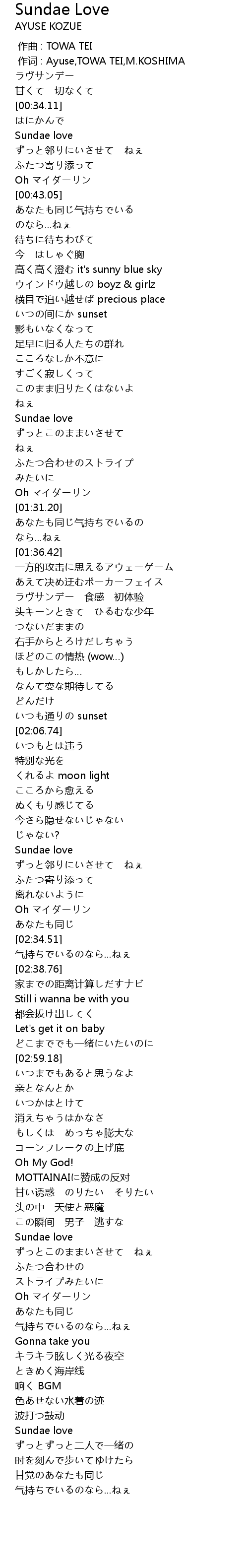 | [00:01.00] | zuò cí : Ayuse, TOWA TEI, M. KOSHIMA |